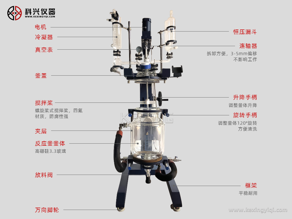 升降雙層玻璃反應(yīng)釜通過雙層反應(yīng)釜夾層,注入恒溫的(高溫或低溫)熱溶媒體或冷卻媒體,對(duì)反應(yīng)釜內(nèi)的物料進(jìn)行恒溫加熱或制冷,并且可以提供攪拌。物料在反應(yīng)釜內(nèi)進(jìn)行反應(yīng),并能控制反應(yīng)溶液的蒸發(fā)與回流,反應(yīng)完畢,物料可從釜底的出料口放出,操作極為方便。是現(xiàn)代化學(xué)小樣,中樣實(shí)驗(yàn)、生物制藥及新材料合成的理想設(shè)備。